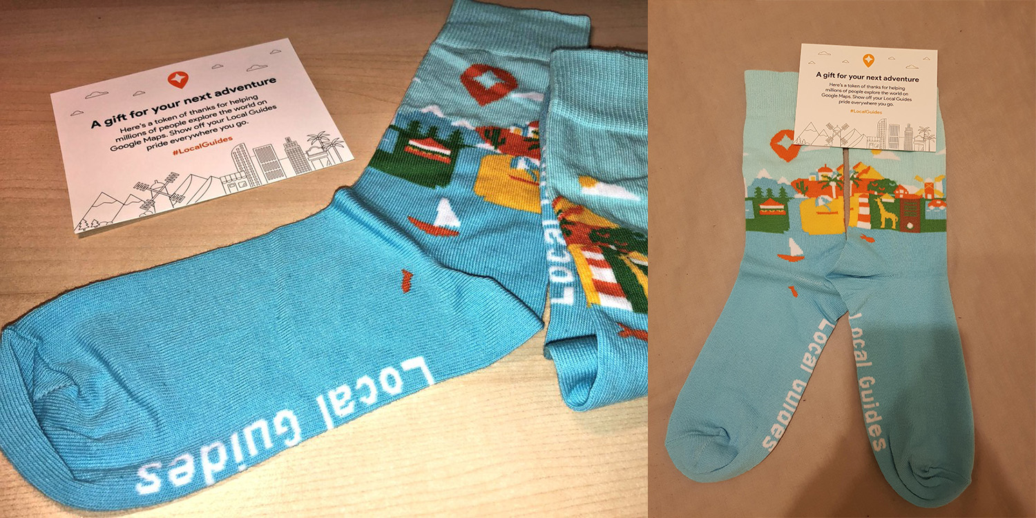 As noted by some Local Guides on Twitter and Reddit, Google is sending out a free pair of socks which are decorated with landmarks and the Local Guides brand name on the bottom. Google’s tag on the socks notes them as a “gift for your next adventure.”
